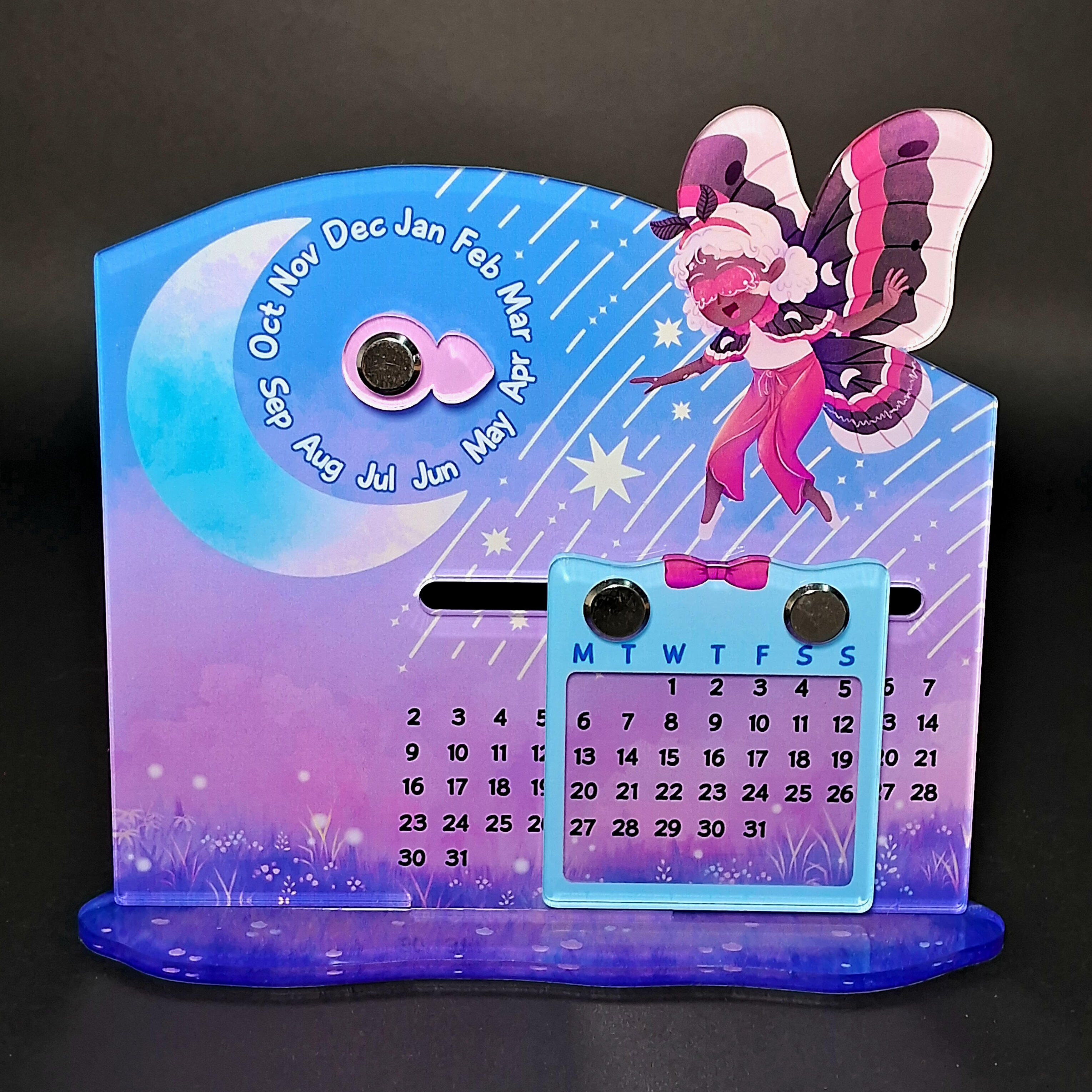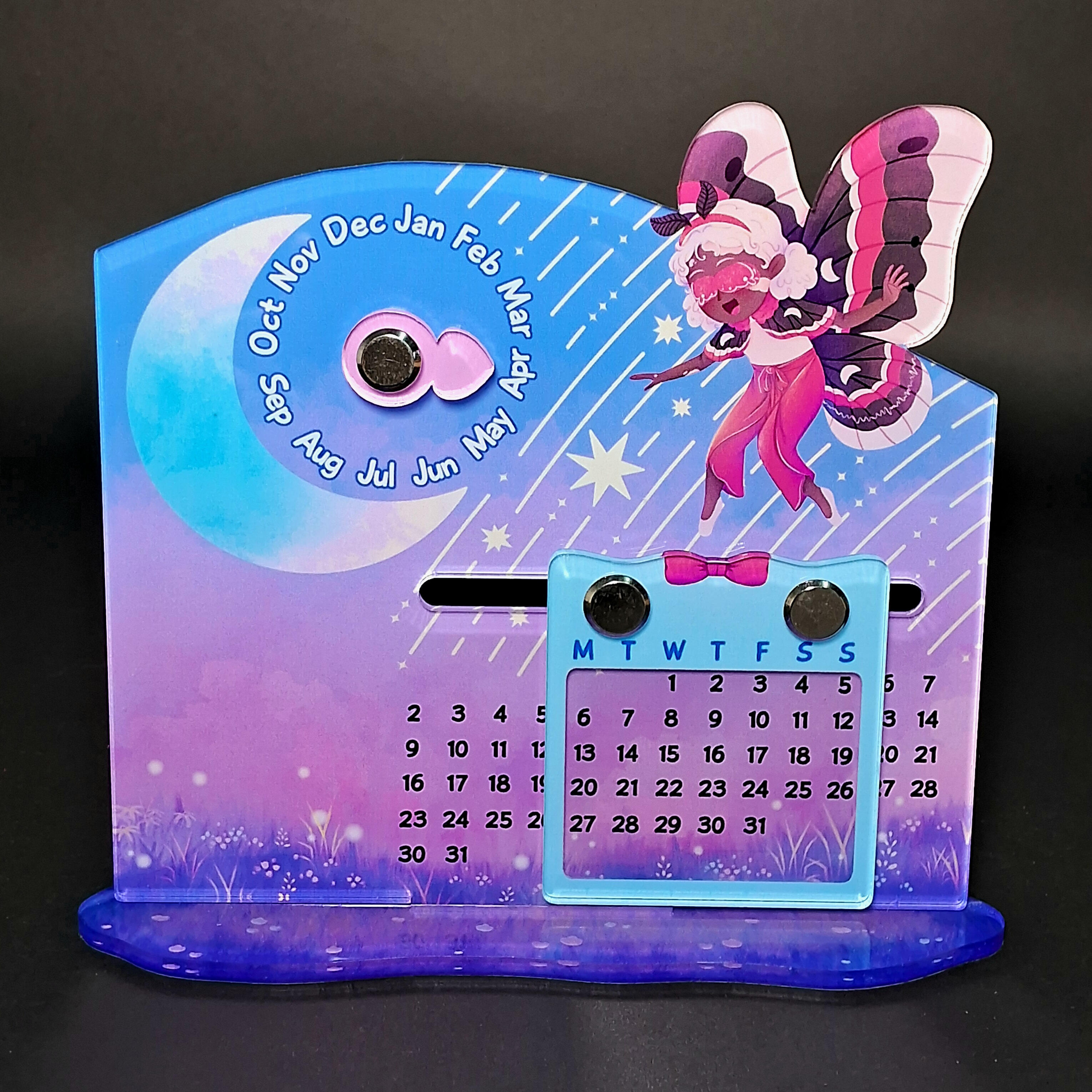 Harga per pcs. Sistem Pre-Order, tersedia: ± 2.5 minggu setelah order.Bahan acrylic ketebalan 3 mm, UV Print satu sisi, ukuran: ± 14cm x 12.5cm. Sudah termasuk spidol non-permanen, bisa untuk tulis tahun dan catatan kecil di kalendernya.Huruf pada slider: M (monday/senin), T (tuesday/selasa), W (wednesday/rabu), T (thursday/kamis), F (friday/jumat), S (saturday/sabtu), S (sunday/minggu)